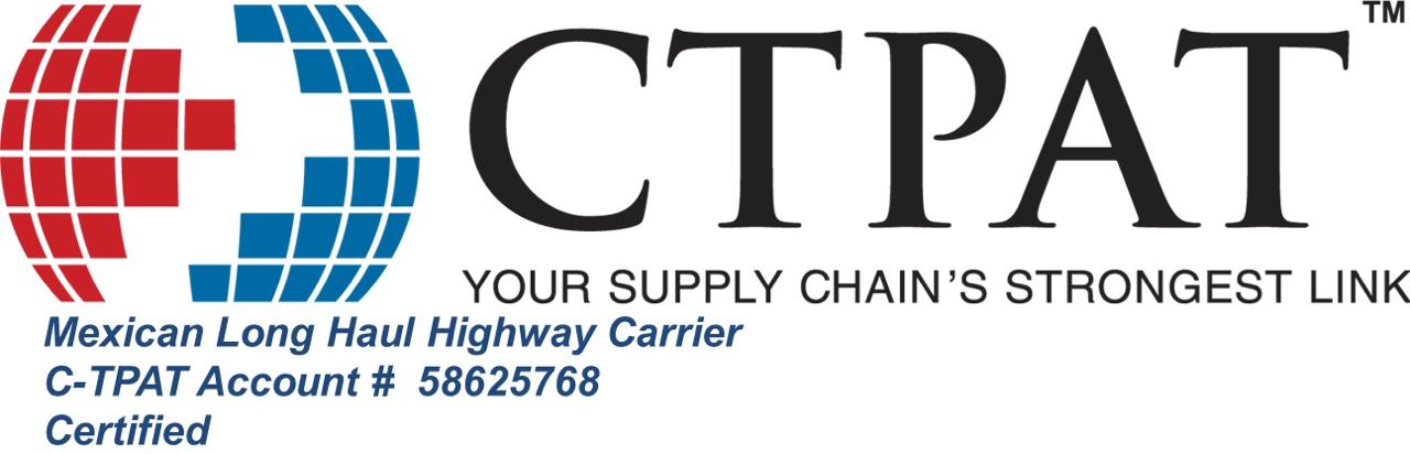 Nuestra empresa cuenta con la certificación CTPAT (Customs-Trade Partnership Against Terrorism), lo que garantiza que cumplimos con estrictos estándares de seguridad en nuestras operaciones internacionales, asegurando la protección de la cadena de suministro y facilitando un comercio seguro y eficiente.